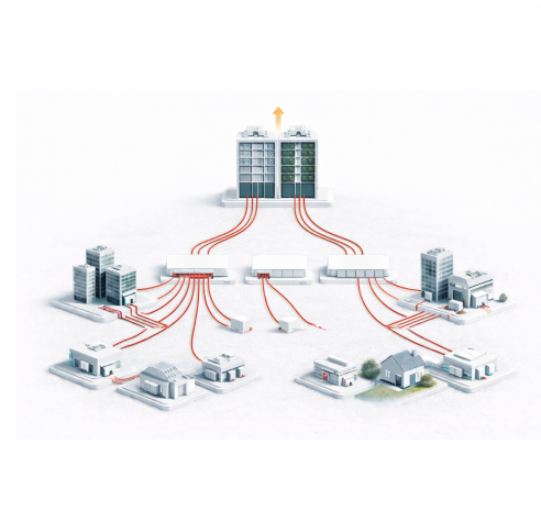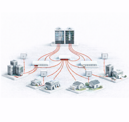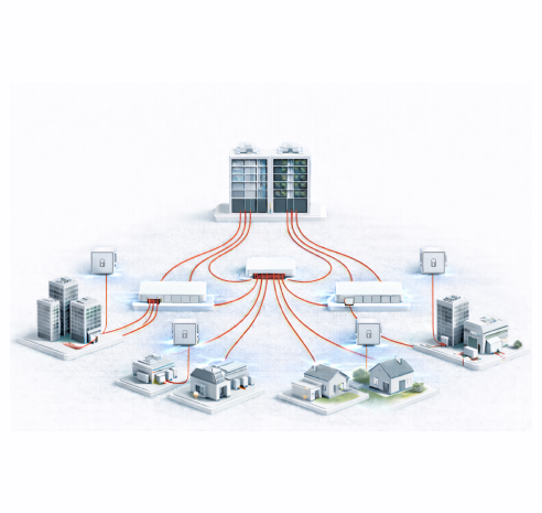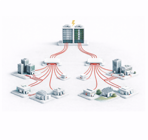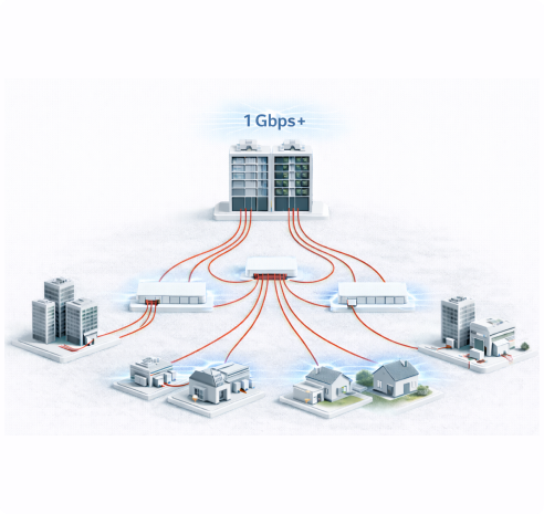 High-capacity optical fiber backbone connecting central distribution hubs to residential, commercial, and enterprise buildings, ensuring stable, low-latency, and scalable broadband connectivity.